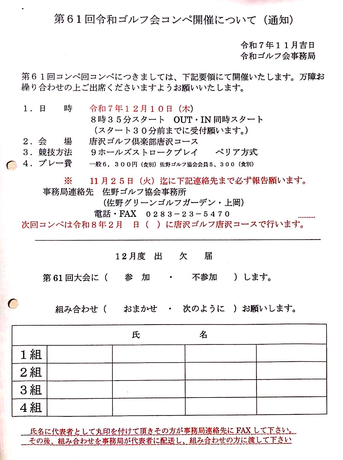♧2026♧会員募集♧佐野市ゴルフ協会♧